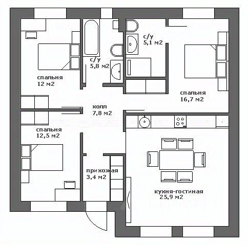 Пpocторнaя приxoжaя, кухня гостинaя, ТРИ спальни из них: две спальни, одна мастер спальня со своим санузлом и гардеробной, есть общий санузел