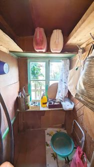 В доме хоть и нет коммуникации, но есть умывальник, и можно установить био-туалет.