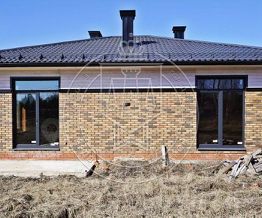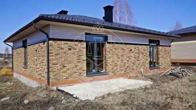 Качественный ,просторный одноэтажный коттедж. Пирог стены выполнен из керамических блоков ПАРАТЕРМ 38 см., облицован Кирово-Чепецким полноценным кирпичом .Верхняя часть фасада обшита сибирской лиственницей и покрыта маслом БИОФА.
