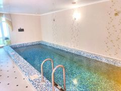 Баня на камнях, бассейн с подогревом и фильтрацией, сарай для садового инвентаря и теплица, у которой основание металл каркас и обшита поликарбонатом.