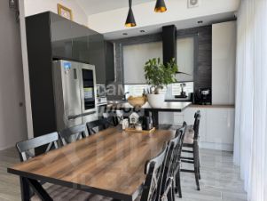 Большая (30 кв.м.) кухня-гостиная со вторым светом , что добавляет помещению простора и воздушности! Панорамные окна увеличивают пространство и позволяют любоваться ухоженным газоном и внутренней территорией двора.