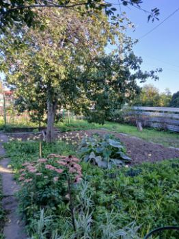 На участке есть все плодовые насаждения( яблоня, вишня, черная и красная смородина, крыжовник, малина, виноград, клубника), есть каркас под теплицу, парник.