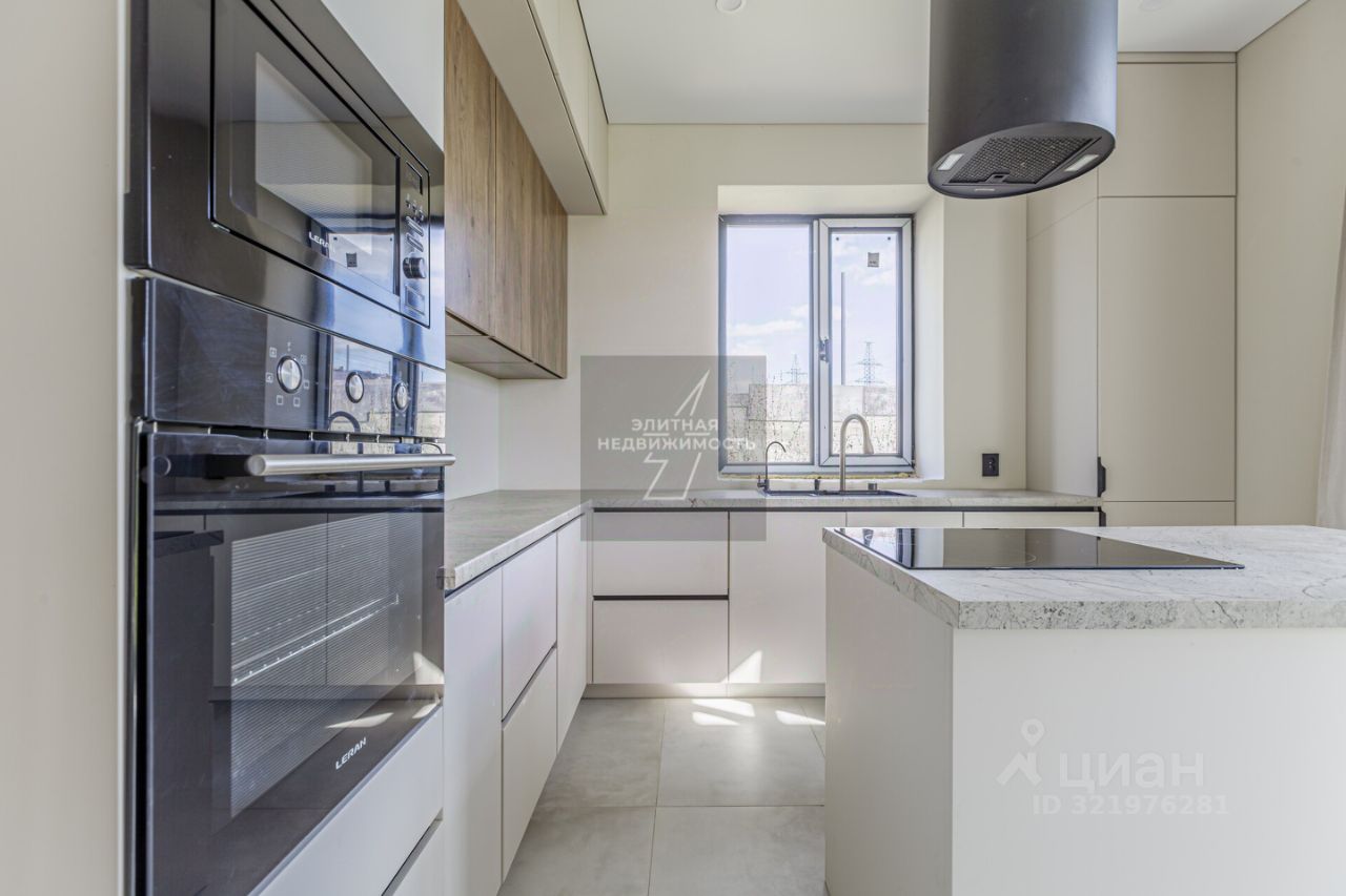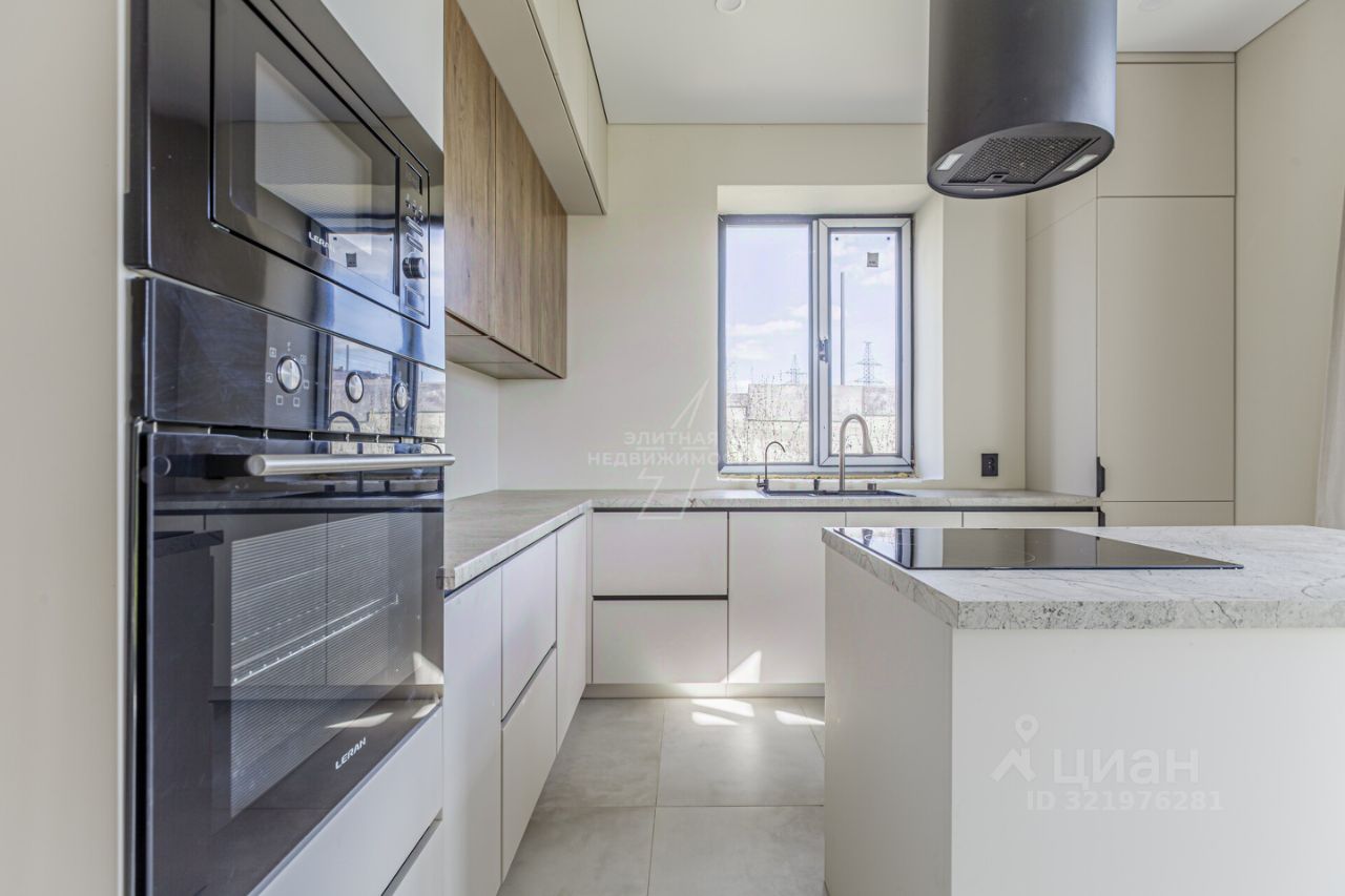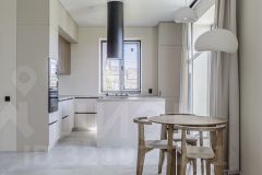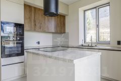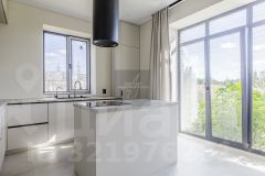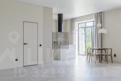 Зона кухни оснащена мебелью и техникой, здесь предусмотрен выход на террасу с красивым видом на лес, можно организовать зону барбекю.