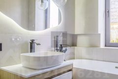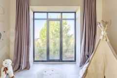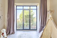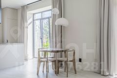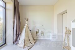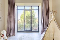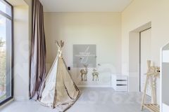 В доме имеются три просторные спальные комнаты, одна из них с отдельной гардеробной и ванной комнатой. По всему дому панарамные окна в пол.