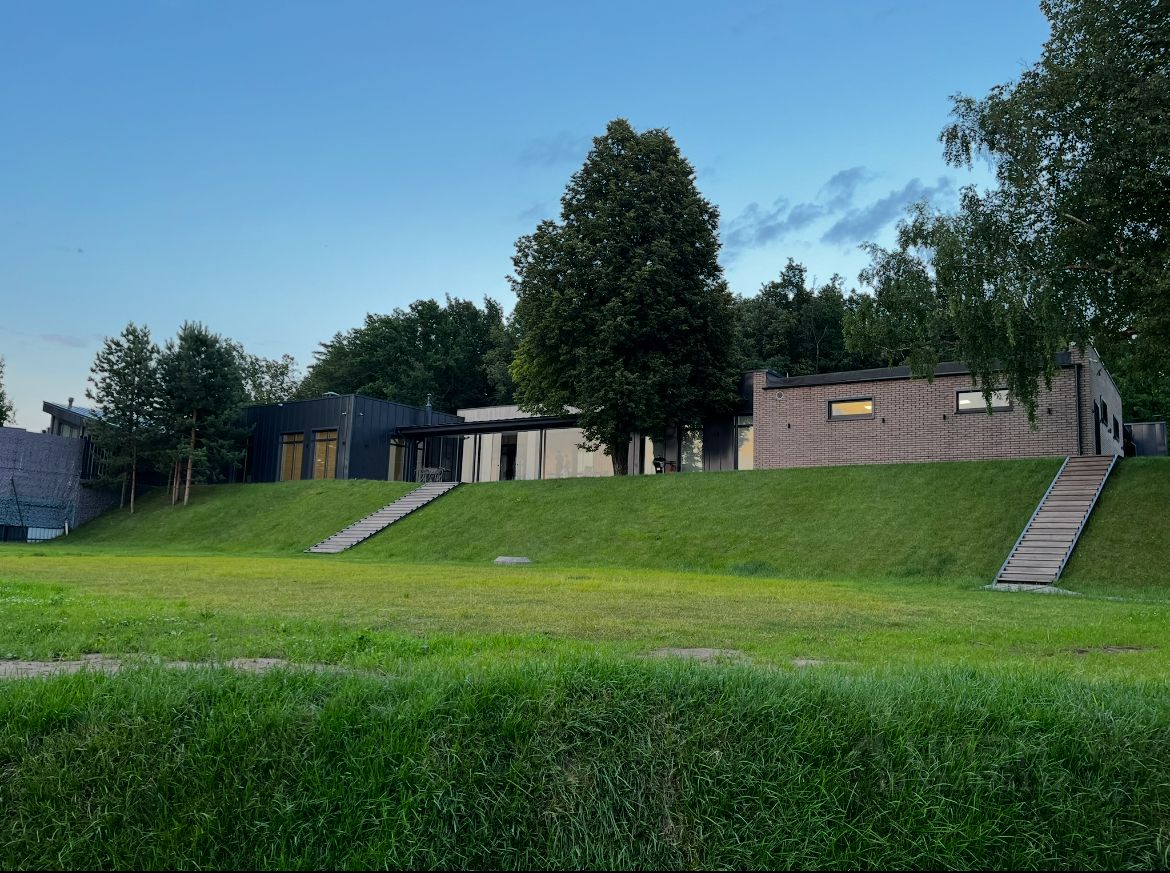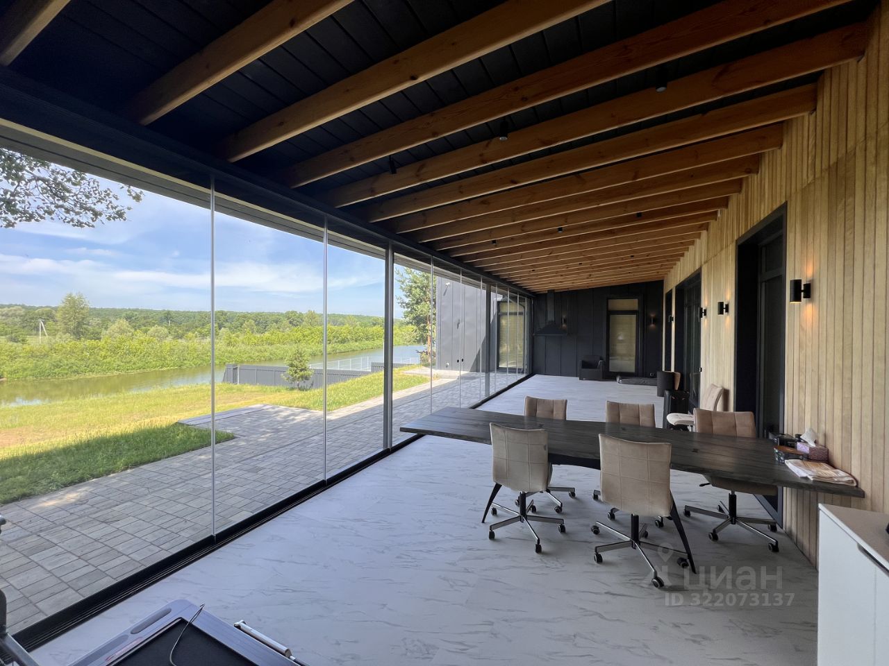 Монолитный дом на плите 333 кв.м., + большой гараж для всей техники + несколько капитальных навесов перед домом для дополнительных авто в не приметном стиле Здание выполнено в самой лучшей одноэтажной планировке, с огромной гостиной, панорамными окнами в пол, светлой, просторной, крытой, тёплой террасой с панорамными без каркасными стёклами с великолепным видом на участок и реку Мёша со своим причалом и специально спроектированном автоматическом подъемнике для лодки, позволяющем эксплуатацию круглый год так, как река не замерзает в этом месте..