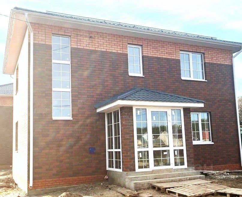 Дом двухэтажный кирпичный, облицовочный кирпич Баварская кладка.
