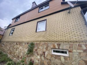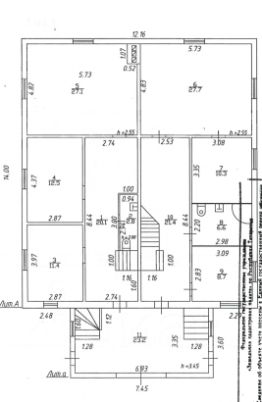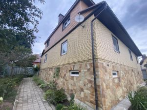 И так : наружные размеры 12х14 + пристрой для входной группы 3,6х7,45, 2 этажа + цоколь под всем домом. Общая площадь 427 м2. Материал стен: - 1 этаж 12х14= 168м2, брус обложенный кирпичом, - 2 этаж 10 х 14 = 140м2, каркасного типа с утеплителем толщиной 25см. Внутренняя отделка натуральное дерево 1 этаж бур, 2 этаж вагонка. Дом разделен по длине на две, равные изолированные половины, северная и южная, на 1 и 2 этажах, с отдельными входами начиная с улицы. Данная планировка позволяет раздельное проживание двух семей, например: - родители и дети, или одной большой семьи, или другие варианты с предпочтением раздельного проживания, но в то же время позволяет быть практически всегда рядом, например, при необходимости ухода за престарелыми родителями.