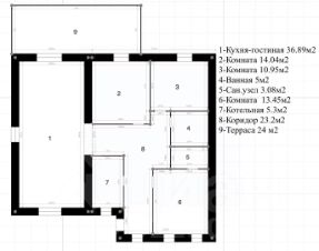 Планировка: Просторная кухня-гостиная с выходом на террасу, два санузла.