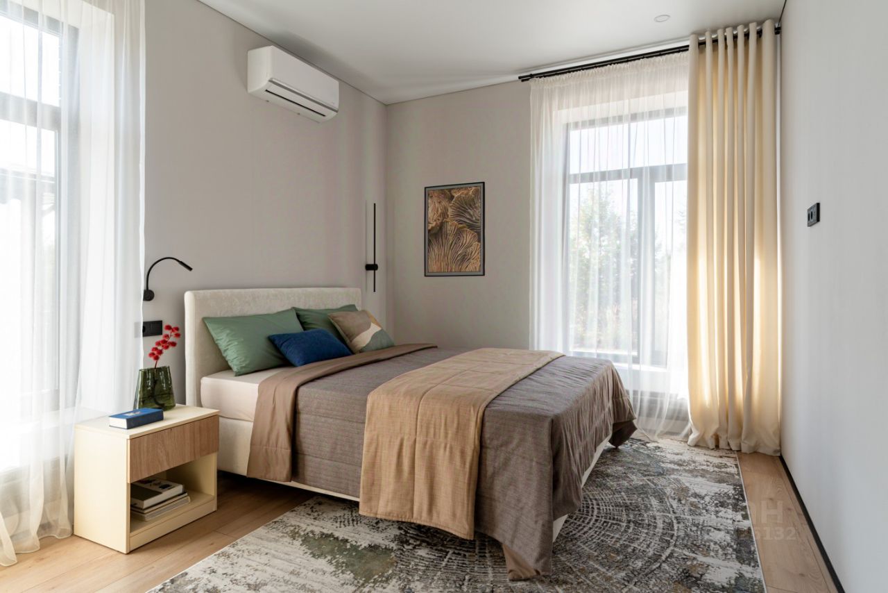 Коммуникации: кондиционеры в гостиной и одной из спален, своя котельная с постирочной зоной (стиральная машина) в доме.