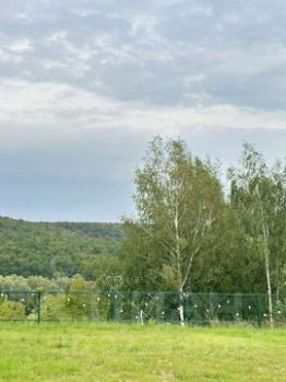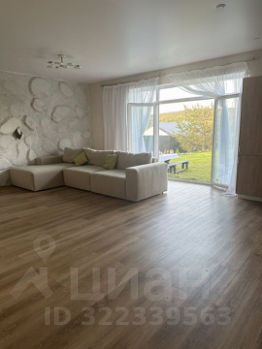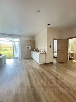 Гостиная с кухней объединена. Панорамное окно открывает великолепный вид на шикарный лес.