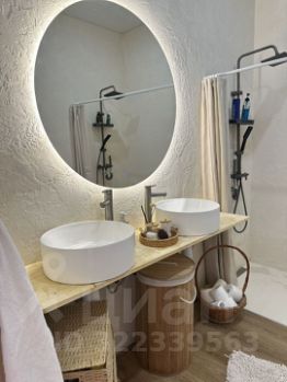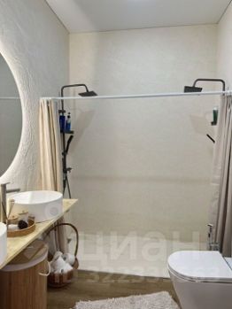 В ванной комнате 2 душа, 2 раковины, унитаз, стиральная машина.