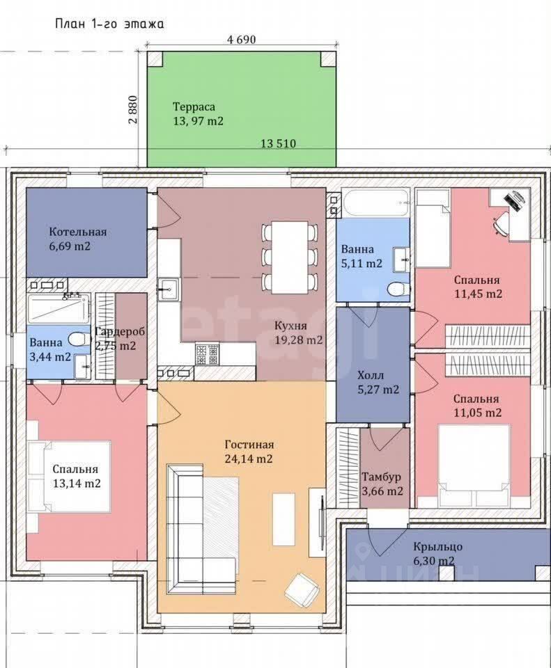 Просторные спальни 2 шт;