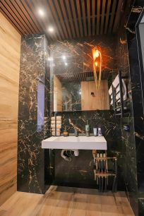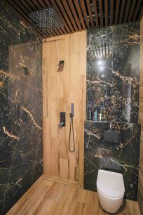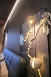 Авторский интерьер в стиле modern & eco hi-tech с использованием премиальных материалов: натуральное дерево, итальянские обои, декоративные панели, бамбук, выключатели из закаленного стекла.
