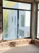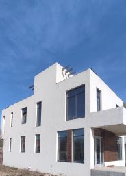 Дом современной архитектуры, с плоской крышей и витражным остеклением. Дом находится в жилом массиве Константиновка. Улица асфальтированная.