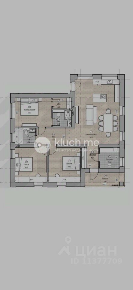 Продуманная планировка: просторная кухня-гостиная 36 кв.м. с выходом на террасу, три комнаты, два совмещённых санузла, высокие потолки (3,6 м) добавляют дополнительное пространство.