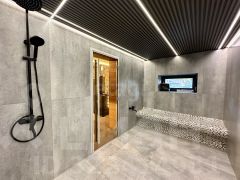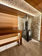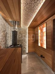 - Автономный банный комплекс по дизайнерскому проекту с качественной отделкой, собственная газовая котельная, включающая парную, душевую , санузел и комнату отдыха — идеальное место для релаксации.