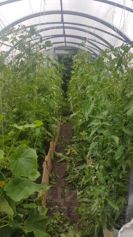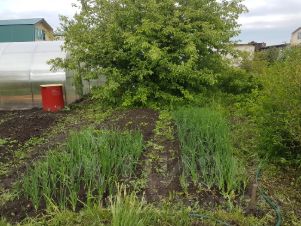 Насаждения: 2 яблони, слива жёлтая и синяя,вишня деревковая и кустарниковая,груша, калина красная, терновник, крыжовник красный и черный, смородина,много малины, виктория, виноград, мелисса, цветы.
