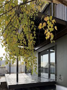 С первого этажа можно выйти на большую террасу и попить кофе под звуки птиц и колышущихся деревьев. Большие окна создают минимальную границу между человеком и природой.