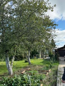 На участке : ухоженный сад с декоративными кустами и плодовыми насаждениями.