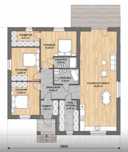Крыльцо, прихожая, холл, котельная, 3 спальные комнаты - одна из них мастер- спальня, кухня-гостиная выходом на террасу, большая совмещенная ванная с туалетом.
