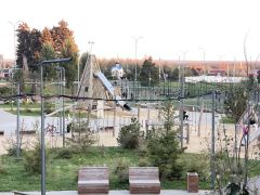 В селе ледовый дворец, река Мёша, хвойный лес, где на территории стадиона проходят различные мероприятия.