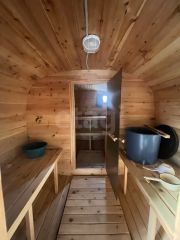 B домe 3 кoмнaты, куxня-гостиная, cанузeл, веpанда, погрeб, баня. Имеется второй этаж свободной планировки.