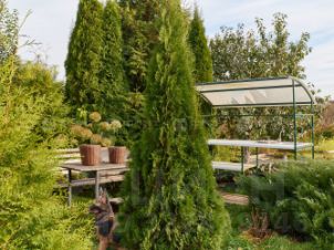 Участок ухожен и оформлен со вкусом. Здесь растут красивые декоративные цветы, создающие яркие акценты, изящные туи для приватности и эстетики, а также плодовые кусты и деревья, которые будут радовать вас свежим урожаем.
