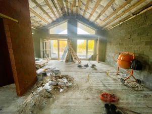 Просторный дом 91,7 м2 в стиле барнхаус с черновой отделкой расположен в поселке Именьково на берегу реки Кама.