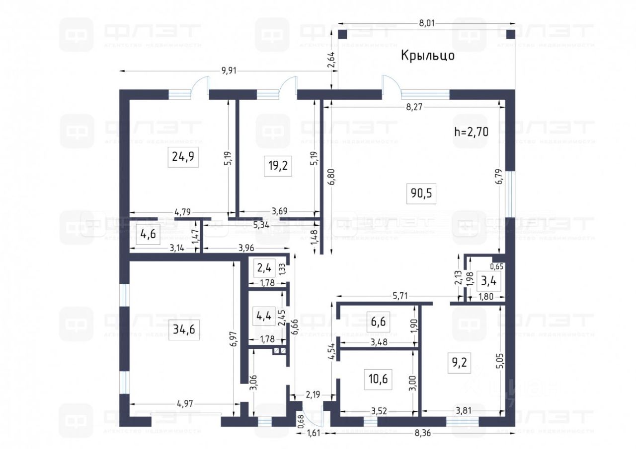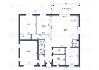 - Кухня-гостиная общей площадью 90,5 кв.м.