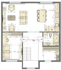 1 этаж: Просторная кухня- гостиная с выходом на готовую террасу, гостевая комната, санузел , котельная, холл - прихожая, крыльцо;