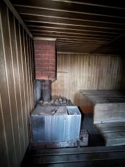 Гараж с автоматическими воротами,баня из качественных материалов с большой парилкой.