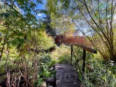 Участок благоустроен: искусственный ручей и пруд, ландшафтный дизайн с хвойными и декоративными растениями. Большой крытый гараж на 2 машины, просторная баня с крытой террасой для семейного отдыха.