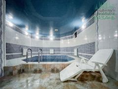 Бассейн глубиной 1,5 метра с подогревом и подсветкой.