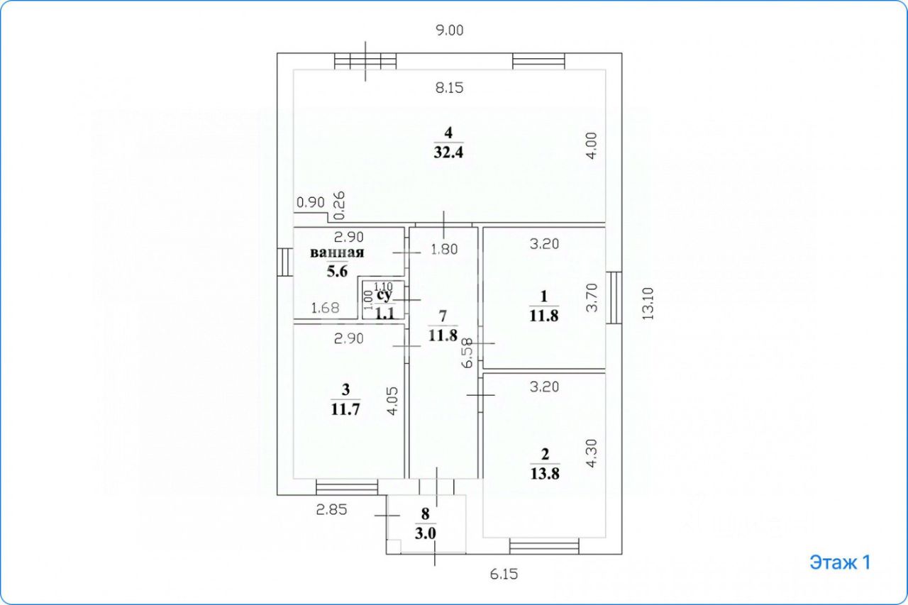 Дом (9*13,5), площадью 95,1 кв.м. расположен на земельном участке 10 сот.