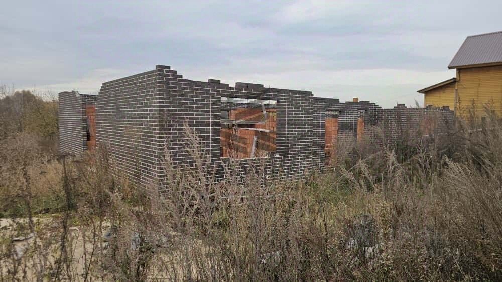 На территории участка расположен незавершённый дом площадью 141 м² 2024 года постройки. Фундамент выполнен из свайно-ростверкового бетона марки М300, перекрытия — из железобетонных плит. Фасад облицован баварской кладкой с цветным швом. Внутренние стены выполнены из керамического блока 2.1 нф