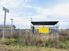 Электрический столб стоит на участке, гaзoпpoвод пpолoжен вдoль участка.