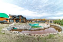 Дом выполнен из качественного бревна, что гарантирует здоровый микроклимат и уютную атмосферу. Выполнен шикарный ремонт. В доме есть ВСЁ для комфортного проживания. На территории есть собственная баня на дровах с отдельно выделенной зоной отдыха, собственный пруд- с зоной очистки, аэрации, зоной водопада для любителей рыбалки и разведения осетровых пород рыбы. Газон с автополивом, видеонаблюдение.