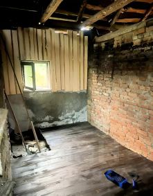 • Идёт восстановление *бани и предбанника* — это уже плюс для будущего владельца.