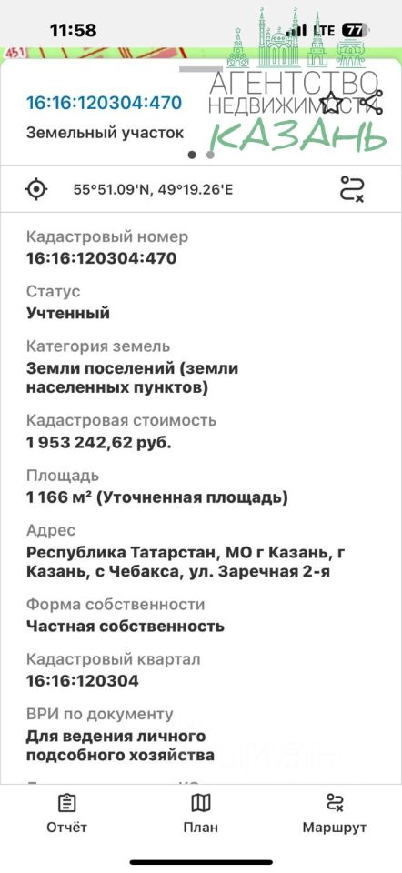 РТ, г.Казань, с.Чебакса, ул.Заречная2-я, кадастровый номер 16:16:120304:470 и 16:16:120304:471, продаются два смежных участка отлично для застройщиков под подстроки 4 домов, участки находятся на возвышенности с шикарным видом, газ свет по границе участка, вода скважина.