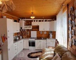 Дом из бревна, на первом этаже кухня 15 кв.м., спальня 14 кв.м., сан.узел и большая прихожая. На втором этаже- две комнаты. Во всех комнатах окна пластиковые, полы деревянные.