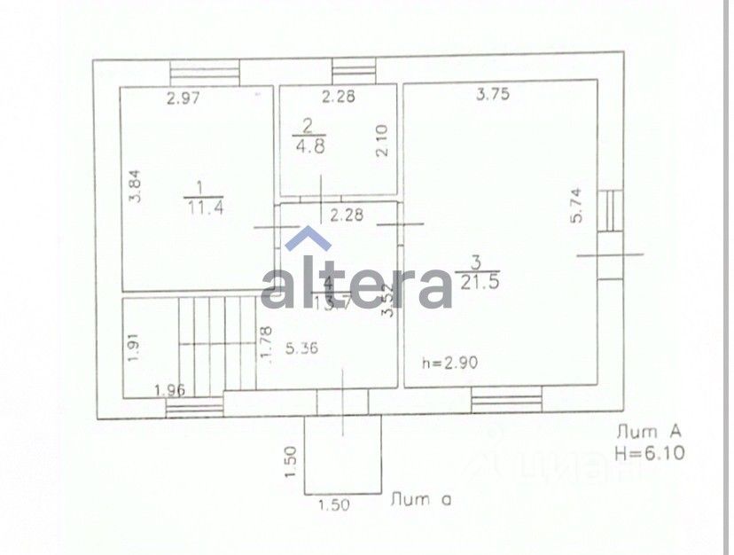 Просторные комнаты: на первом этаже кухня гостиная 21,5м, комната 11,4м. На втором этаже расположены спальня 11м и детские комнаты 11м и 11,7м.