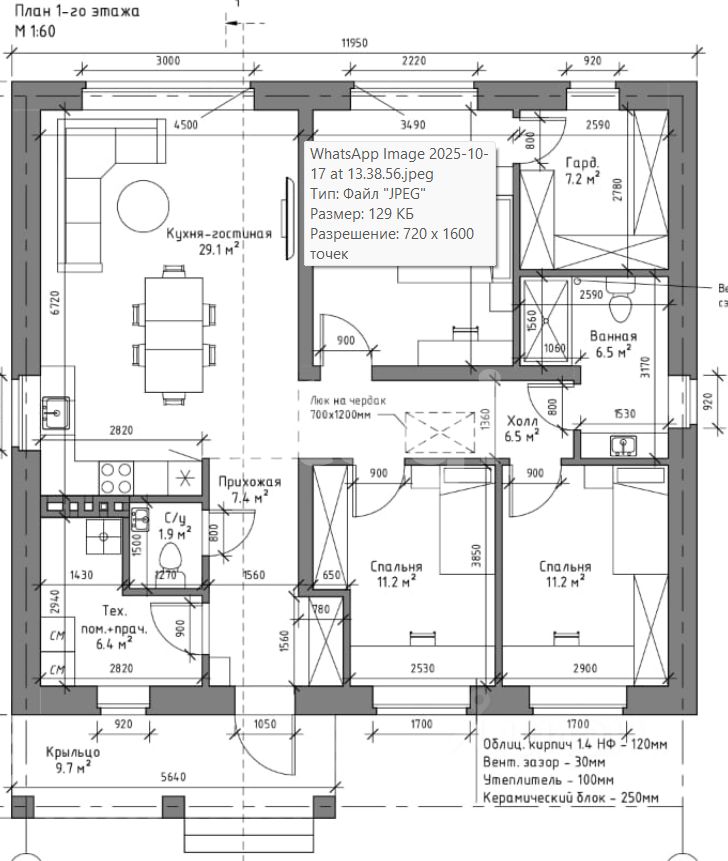 - Материал стен: Керамический блок Porotherm 250 мм+ утеплитель + облицовочный кирпич;