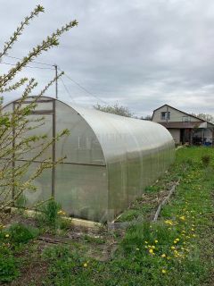 На территории: плодовые деревья, плетистые розы,сортовая клубника ,виноград красный и зеленый очень сладкий.теплица 3х8, хоз.постройки.