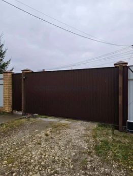 Участок по периметру огорожен забором из профнастила, по фронтальной стороне кирпичные столбы + профнастил. Установлены автоматические откатные ворота.