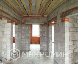 Фундамент ленточный, буронабивные сваи через 2 метра, стены керамический блок Porotherm 380 мм., облицованные 1,5 кирпичом, крыша черепица, 5тикамерный профиль, сделана стяжка пола.