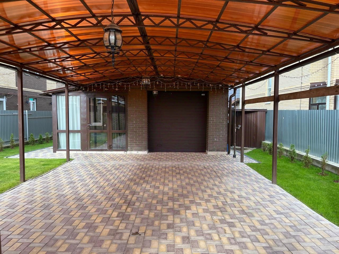 Отделка двора: Брусчатка.