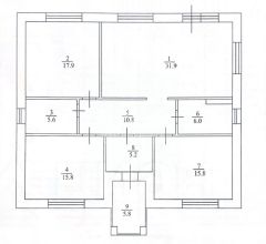 Просторная кухня-гостиная с выходом на террасу, три больших спальных комнаты, санузел, котельная, холл; крыльцо