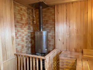 В бане имеется санузел и полноценная зона отдыха с кухонным уголком.Высота потолков 2,7м.