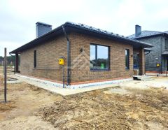 Фундамент утеплен, сделана отмостка, установлен забор с трех сторон