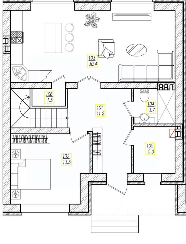 5 спален, просторная кухня-гостиная, 2 санузла.